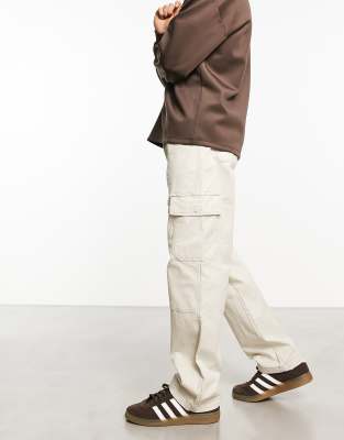 Bershka wide leg contrast stitch cargo in ecru ASOS